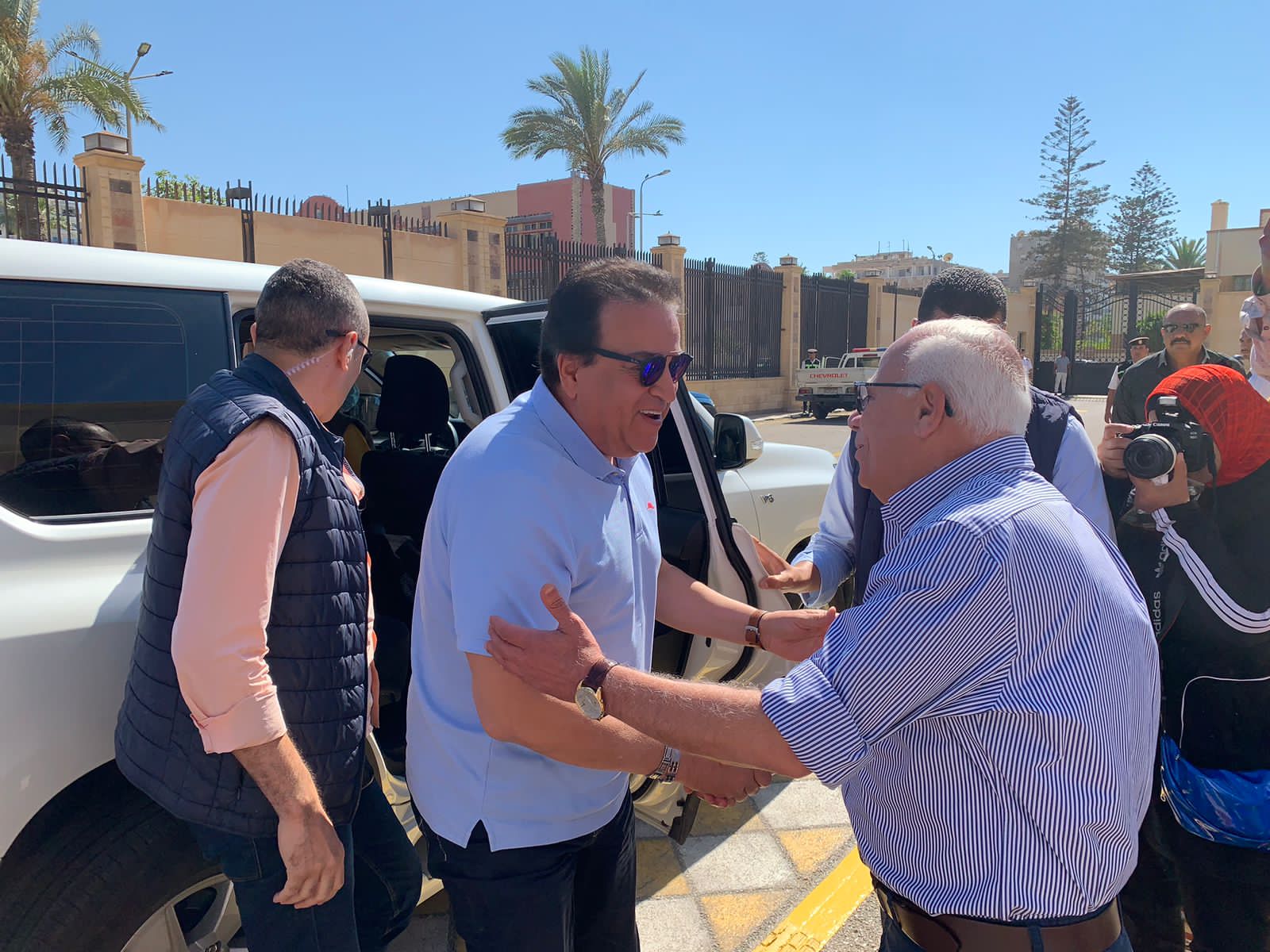 وصول وزير الصحة لافتتاح مجمع الشفاء ببورسعيد