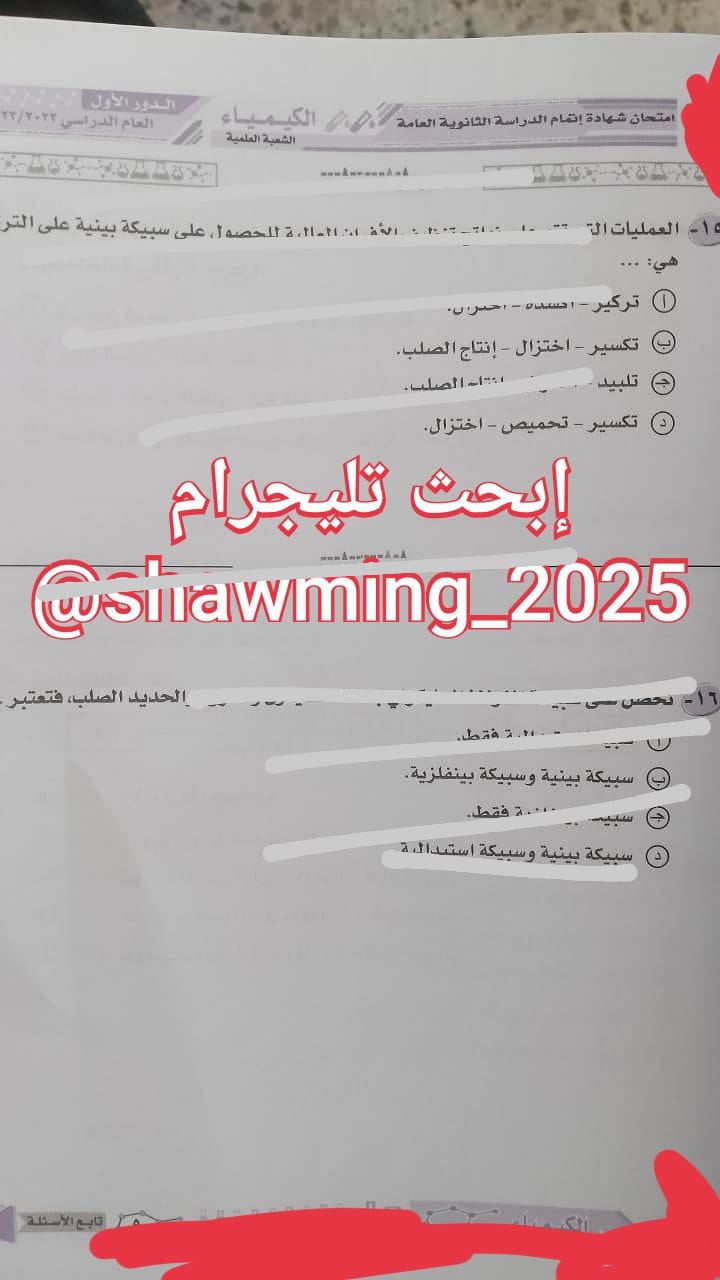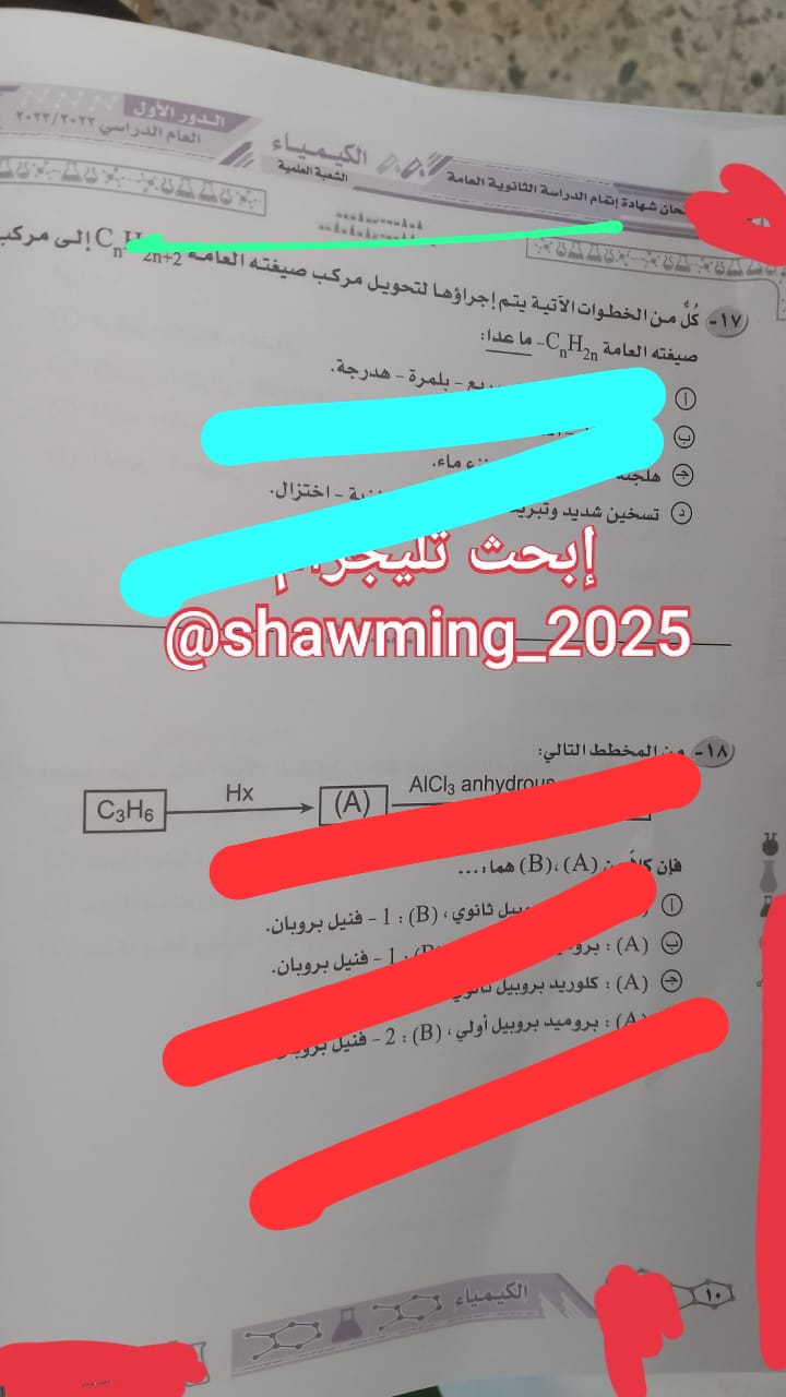 تداول أدمن جروب شاومينج للغش الإلكتروني على تليجرام، صورًا ادعى أنها خاصة بامتحان الكيمياء لطلاب الثانوية العامة، والذي يؤديه الطلاب الآن داخل لجان مؤمنة في كافة أنحاء الجمهورية.
