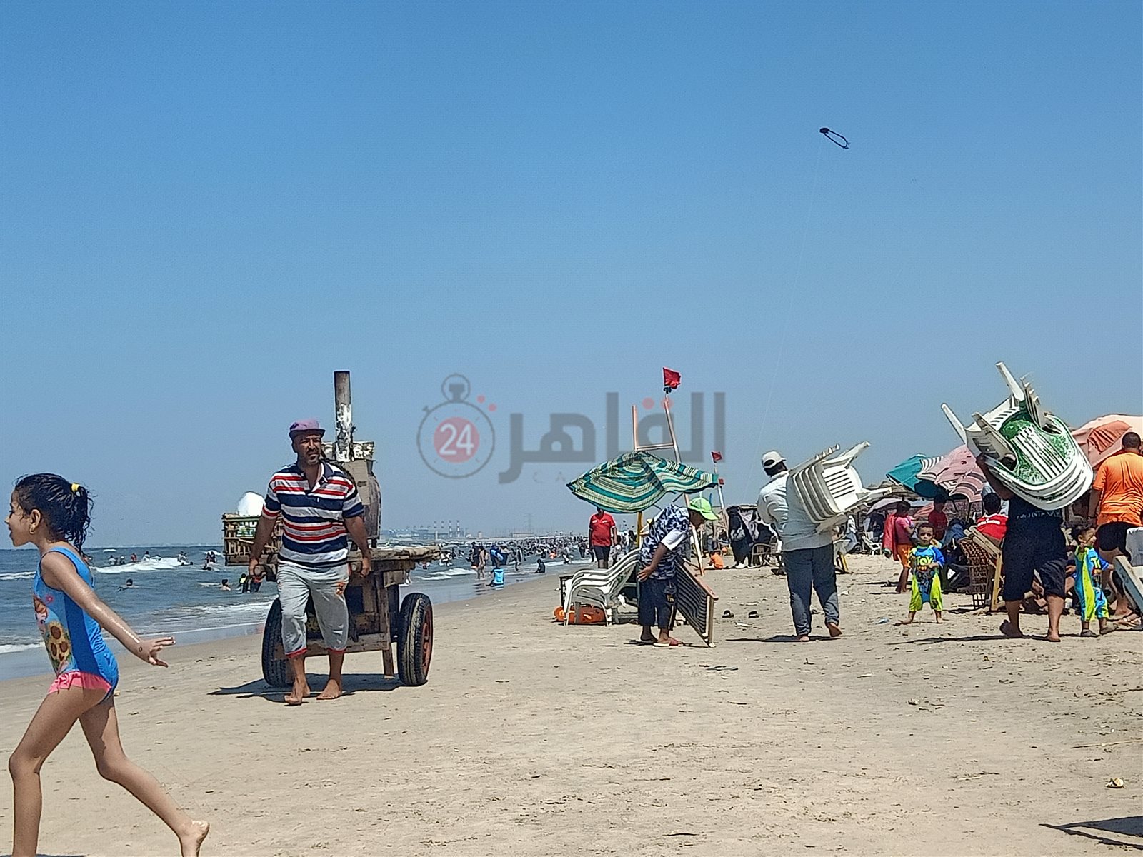 إقبال كثيف على شاطئ جمصة في رابع أيام عيد الأضحى