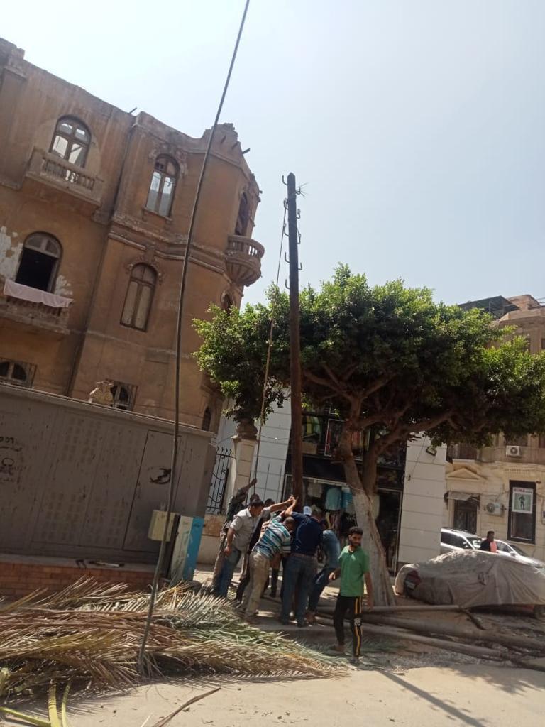 سقوط نخلة وأعمدة إنارة بمنزل عباس العقاد بمصر الجديدة.. ووزارة التنمية المحلية تتدخل