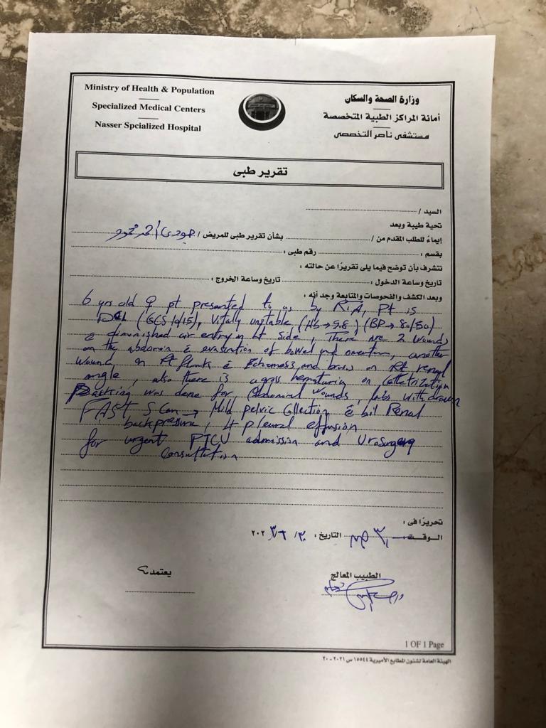 وحرر محضر بالواقعة وتولت الجهات المعنية التحقيق، والتي أمرت بانتداب الطب الشرعي لتشريح جثة الطفلة والتصريح بالدفن عقب ذلك، وطلبت تحريات المباحث حول الواقعة وملابستها وسؤال أهليتها وشهود العيان بالواقعة.