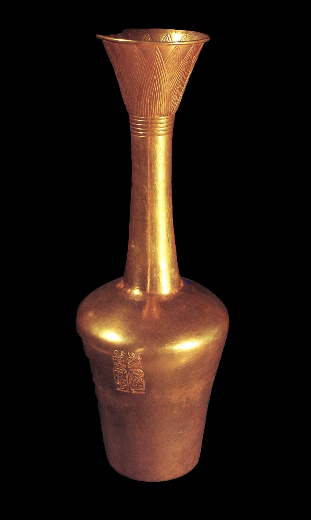 المتحف المصري بالتحرير يعرض إناءً ذهبيا على شكل زهرة اللوتس للملك بسوسنس الأول