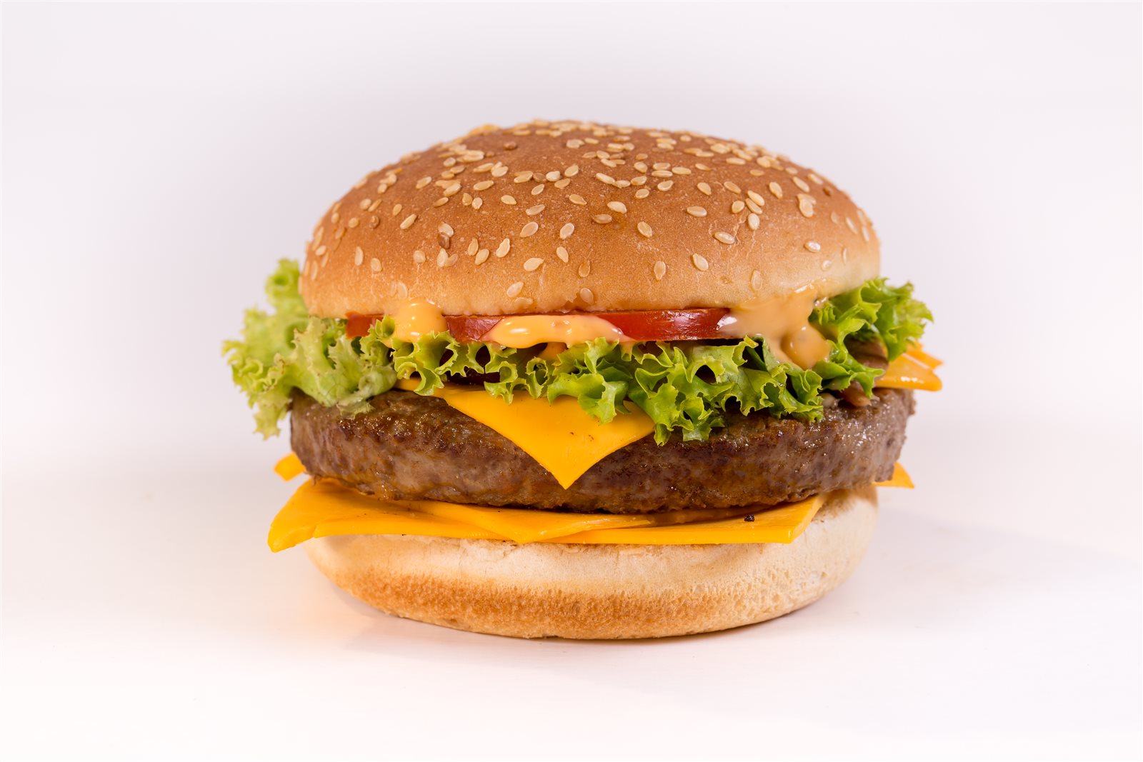 - تقديم البرجر باللحم مع القليل من البطاطس المقلية.