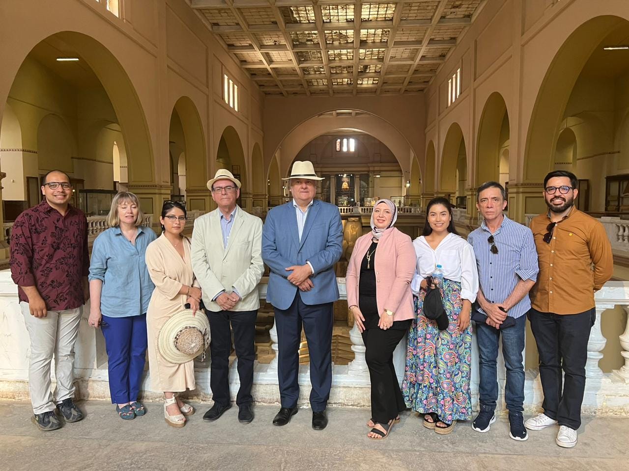 واستقبلت إدارة المتحف المصري بالتحرير، الدكتور سيزار لاند ارويو وعائلته ورافقهم خلال الزيارة منيرة حمدي ضمن أمناء المتحف المصري بالتحرير.