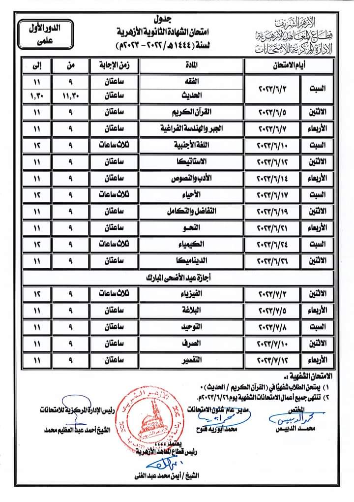 امتحانات الثانوية الأزهرية