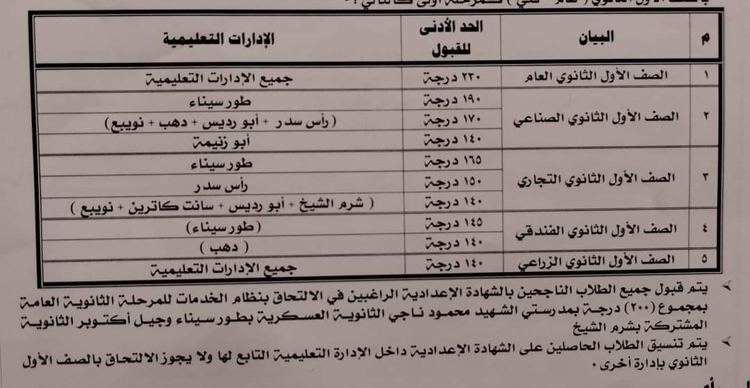 صدق اللواء خالد فوده محافظ جنوب سيناء على تنسيق القبول للثانوي العام والثانوي الفني للعام الدراسي 2024-2023، بمختلف مدن المحافظة.