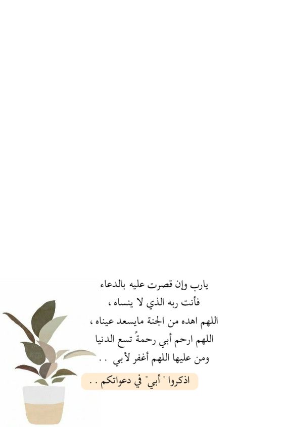 - اللهم افتح أبواب الرحمة والجنة لأبي، وارحمه برحمتك، وارضَ عنه يا ألله وبشّره بروح وريحان.