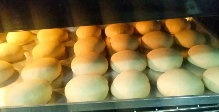 - تقسيم العجينة إلى كرات متوسطة الحجم، ونرصها في صينية مرشوشة بالدقيق، ومن ثم تتركها ترتاح.
