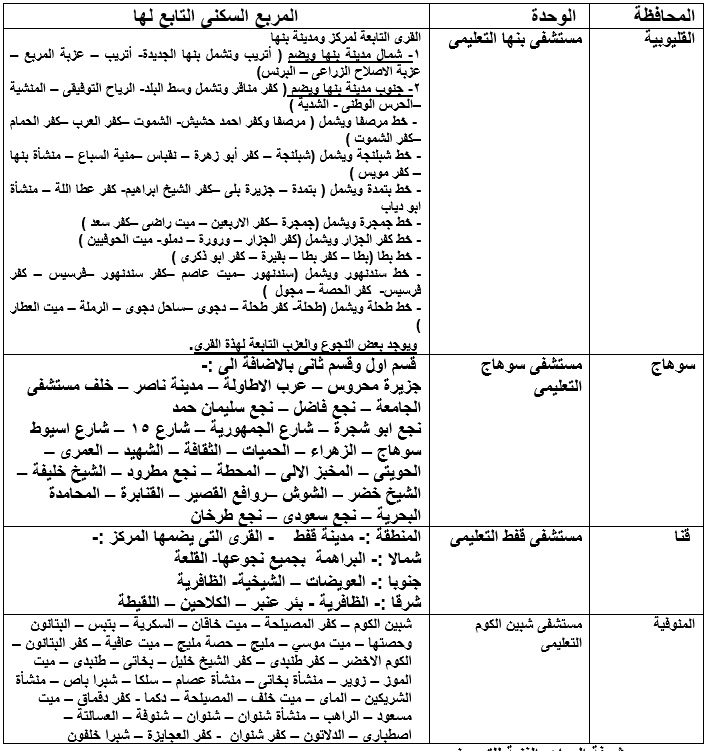 المستشفيات والمعاهد في جميع المحافظات والمربع السكني لها