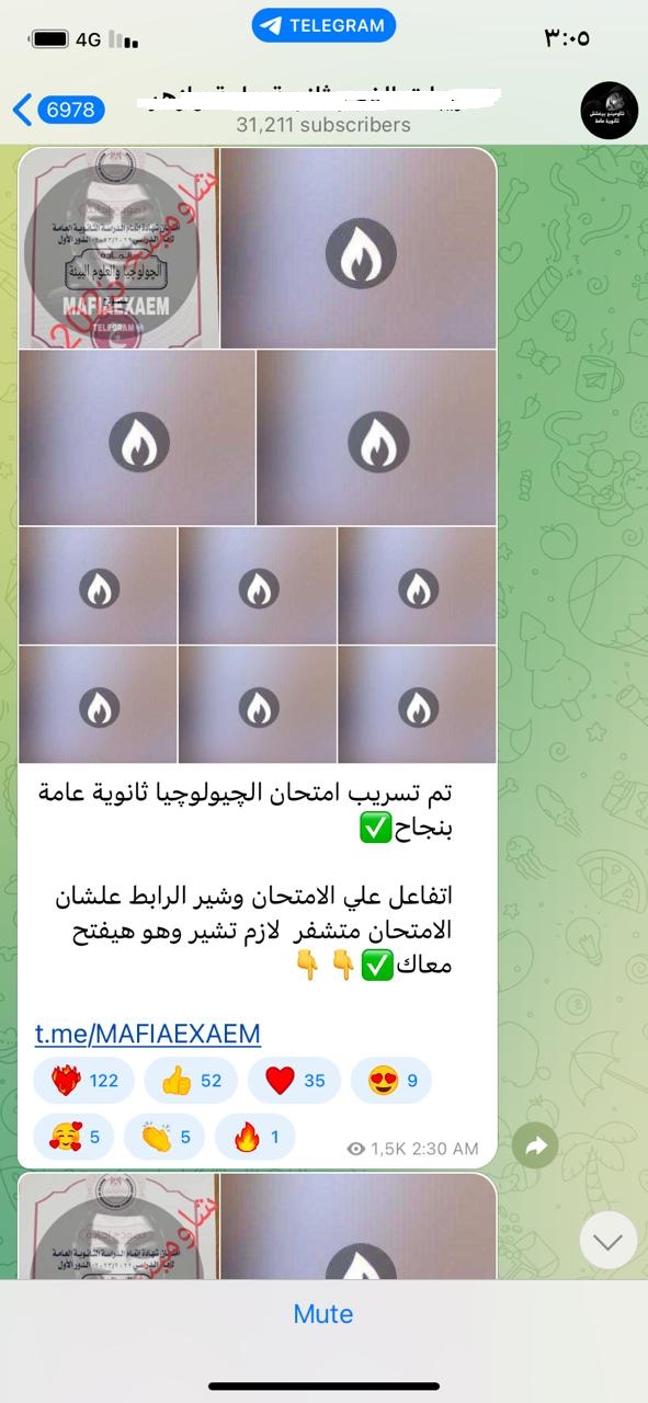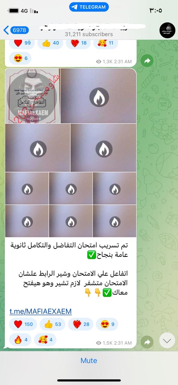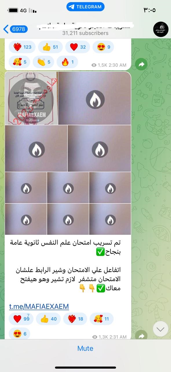 وبعد دقائق من نشر الامتحان، عاد بالرسالة نفسها مع تغيير الصور، حيث كتب: “تم تسريب امتحان علم النفس ثانوية عامة بنجاح” وذلك لطلاب القسم الأدبي، ولم يمرد سوى دقائق حتى نشر امتحان الجيولوجيا لطلاب علمي علوم.