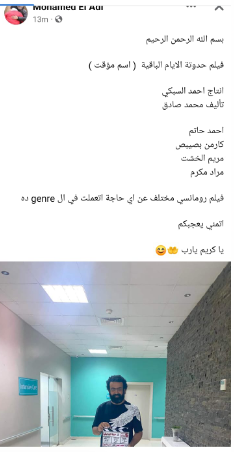 ونشر ماندو العدل، صورة من كواليس الفيلم عبر حسابه الشخصي بموقع التواصل الاجتماعي فيسبوك، حيث قال: بسم الله الرحمن الرحيم فيلم حدوتة الأيام الباقية اسم مؤقت، والعمل من إنتاج أحمد السبكي وتأليف محمد صادق، وبطولة أحمد حاتم، وكارمن بصيبص، ومريم الخشت، ومراد مكرم.