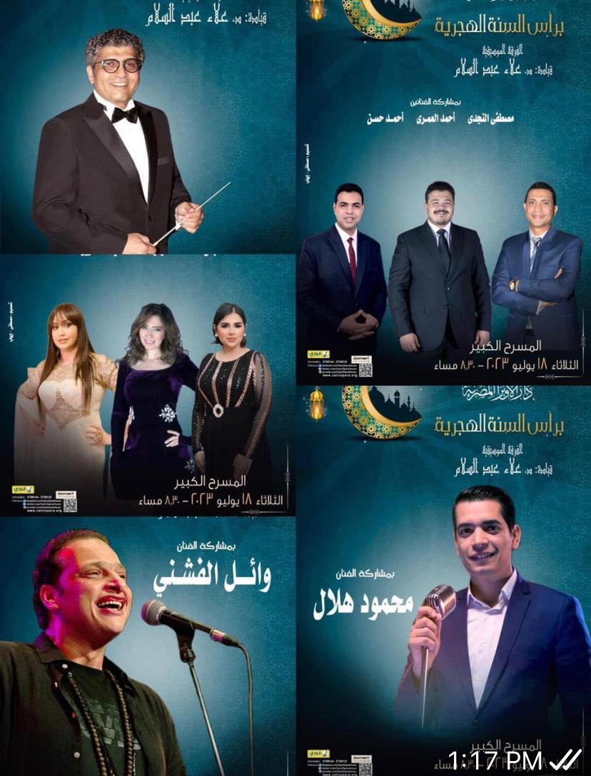 وأكد رئيس الأوبرا أنه يقام على المسرح الكبير احتفالية دار الأوبرا، بالسنة الهجرية الجديدة، وتحييه فرقة الإنشاد الديني، ويقام حفلا لطلاب مركز تنمية المواهب، والاحتفال بذكرى ثورة 23 يوليو، كما أوضح أن مسرح الجمهورية، يشهد حفلا لكورال واوركسترا بوليفيا، بالإضافة إلى ليلتين لعرض لحظة لفرقة الرقص المسرحي الحديث، وليلتين لعرض النداهة، لفرقة فرسان الشرق.