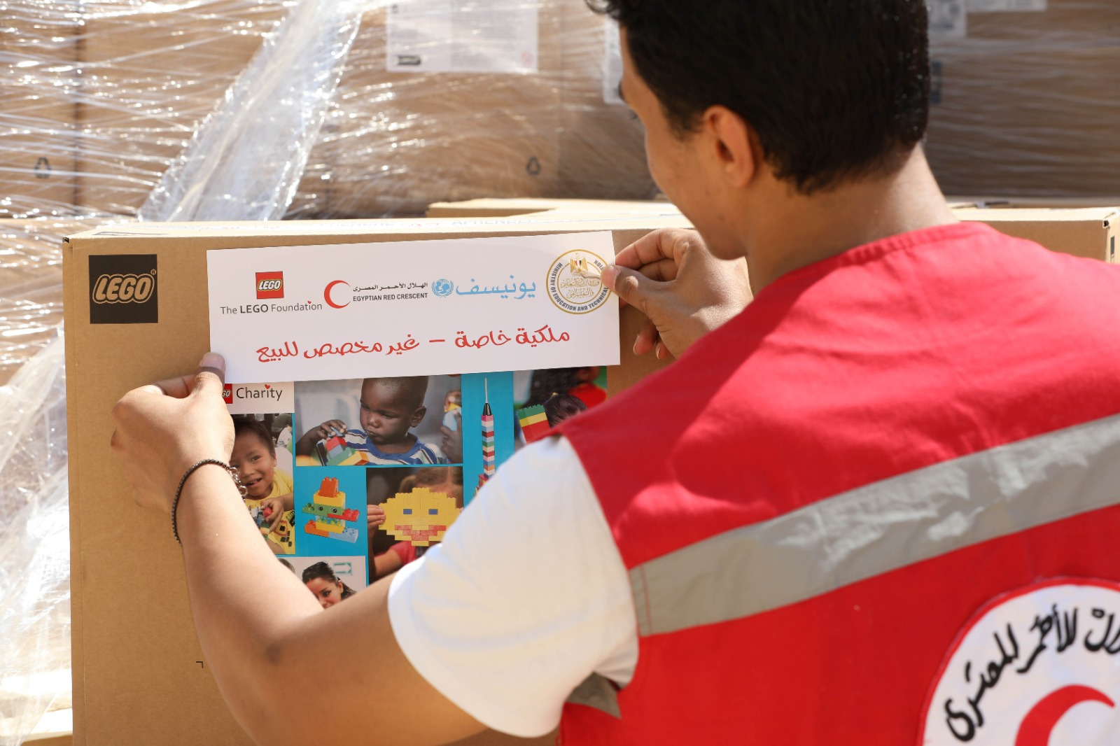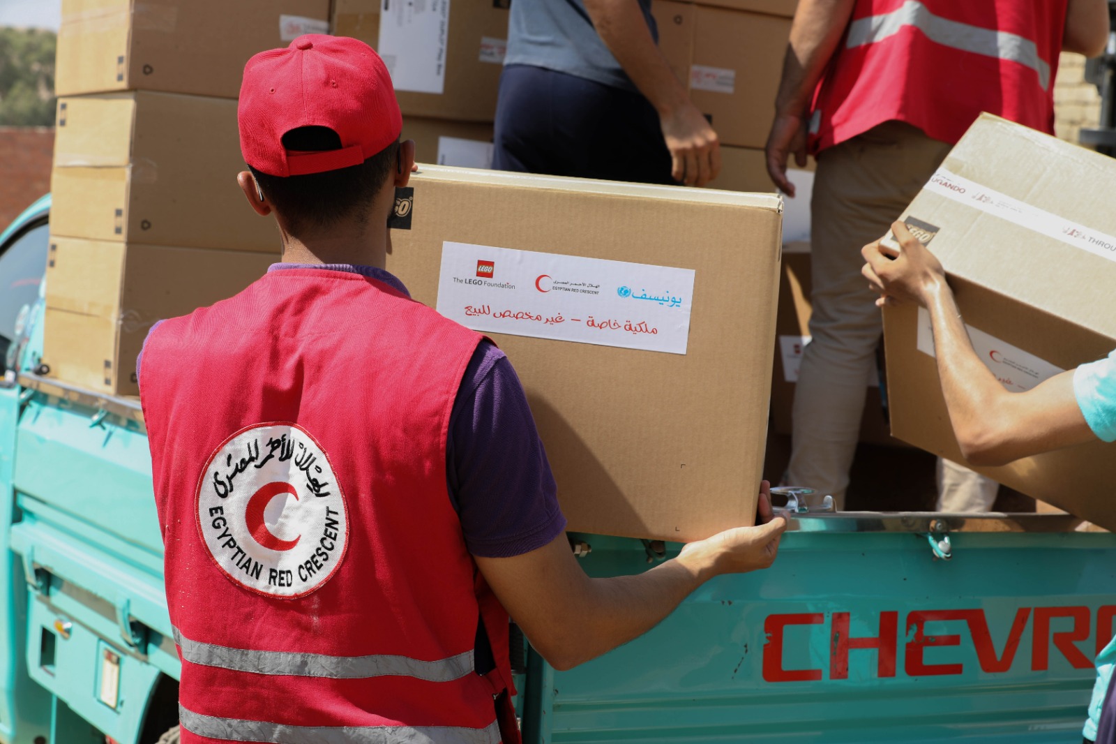 وقالت جمعية الهلال الأحمر المصري، في بيان رسمي لها، أن ذلك يأتي استكمالا للتعاون المشترك بين جمعية الهلال الأحمر وهيئة الأمم المتحدة للطفولة «يونيسف مصر» ووزارة التربية والتعليم والتعليم الفني، مضيفة أن برنامج التعلم عن طريق اللعب عن طريق توزيع الحزم الى المدارس والمديريات التعليمية، يقوم في عدد 9 محافظات «القاهرة - الجيزة - القليوبية - الشرقية - اسيوط - دمياط - الاسكندرية - مطروح - أسيوط»، وتأتي تلك المرحلة بعد استكمال التدريبات الخاصة بتدريب الكوادر التعليمية على الطرق المثلى الاستخدام «lego» في العملية التعليمية، والعمل على خلق بيئة تعليمية داعمه وهادفة توطد العلاقة بين الطلاب والمدرس والمدرسة.