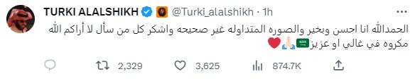 الحالة الصحية لـ المستشار تركي آل الشيخ