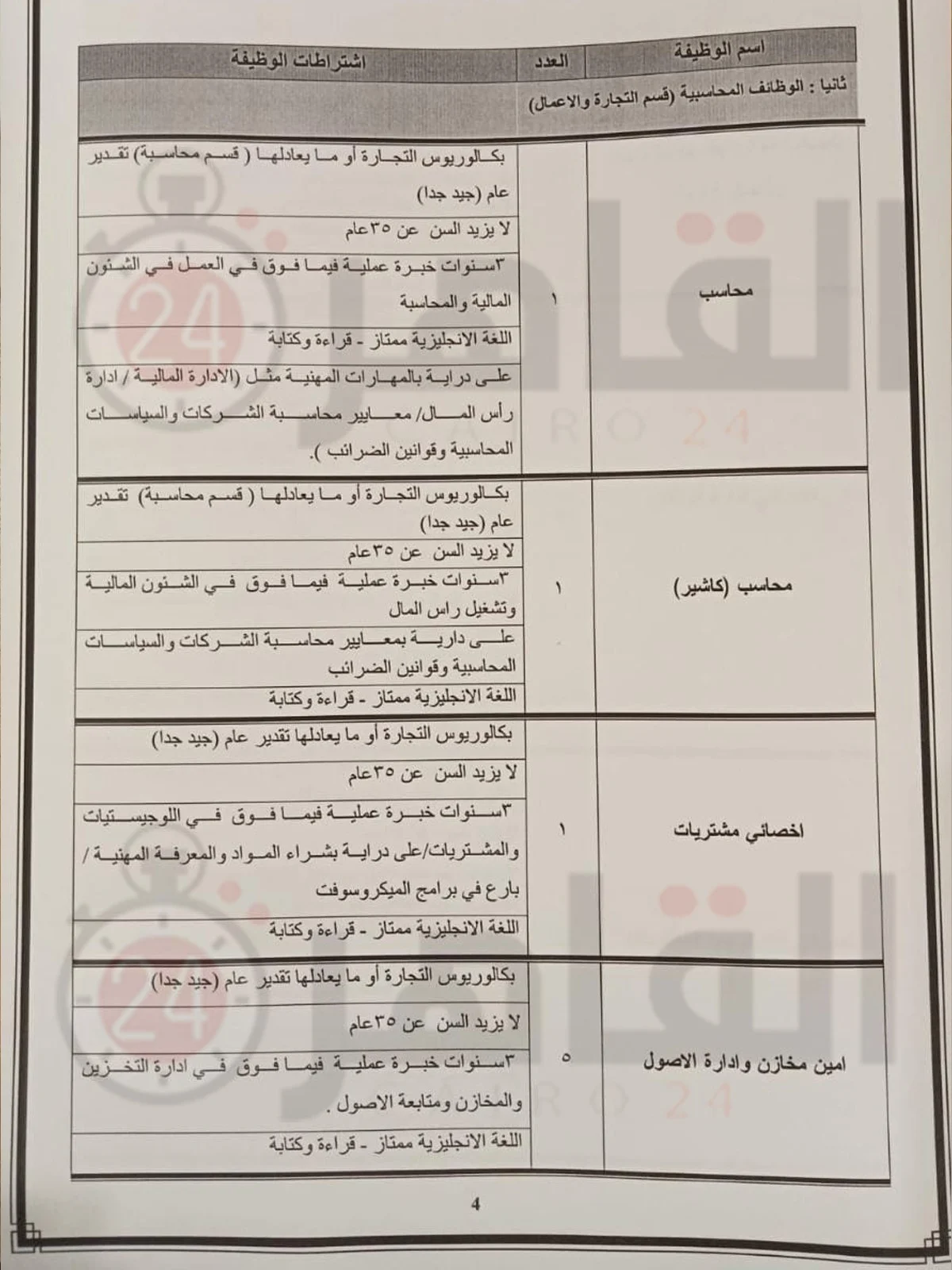 وأوضحت الشركة أنه يتم قبول طلبات المتقدمين لجميع الوظائف المطلوبة بمشروع القطار الكهربائي الخفيف LRT، في إطار نظام التعاقد السنوي، على أن يكون التجديد حسب الكفاءة والاحتياج من قبل مسئولي الشركة المصرية لإدارة وتشغيل المترو.