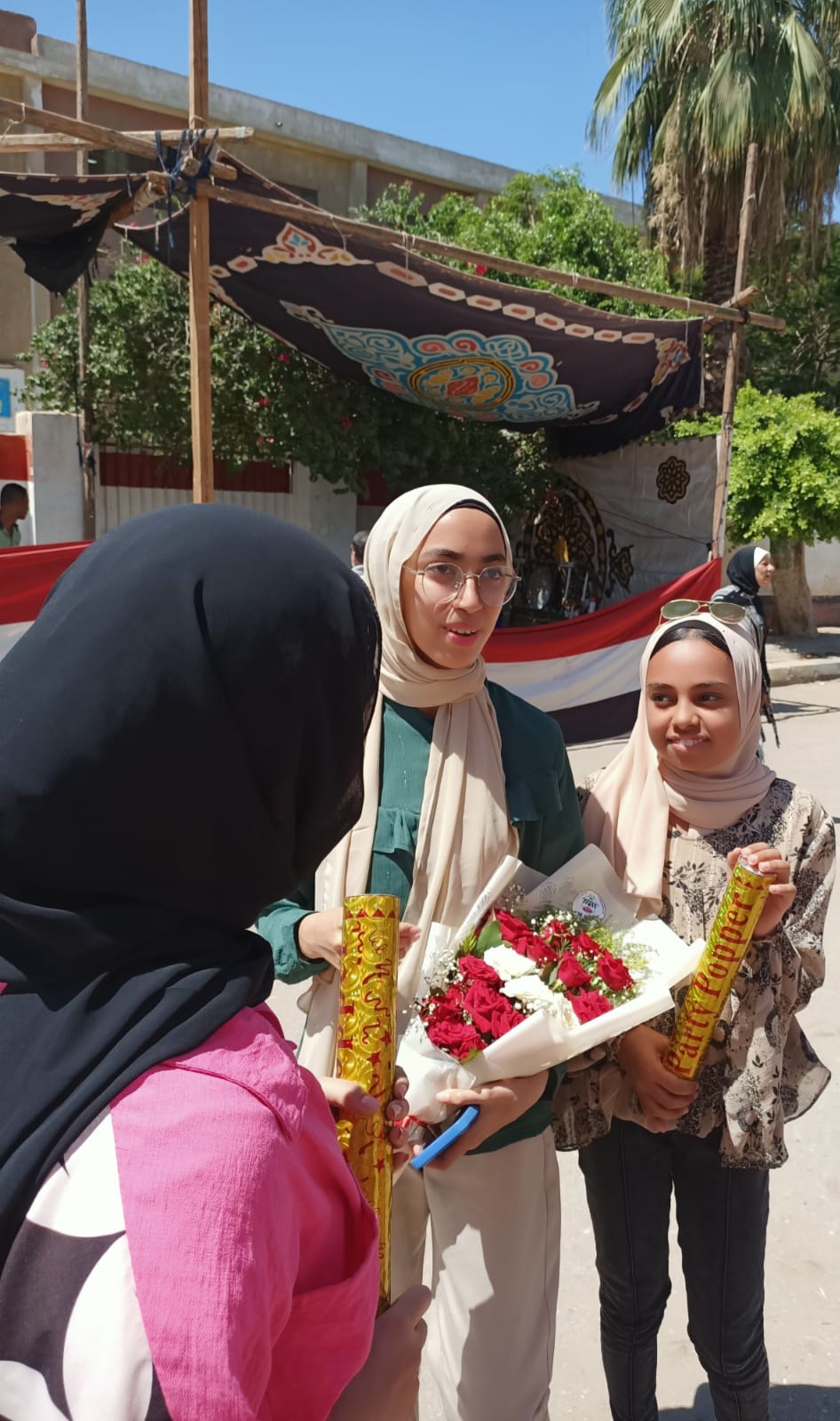 حرص عدد من أولياء الأمور لطلاب الثانوية العامة بالقليوبية، وكذلك أشقاؤهم على انتظارهم بالورود والشماريخ أمام لجان الامتحانات خاصة لجنة مدرسة الثانوية بنات بمدينة بنها، للاحتفال معهن بنهاية الامتحانات وبدء الإجازة بعد فترة عناء.