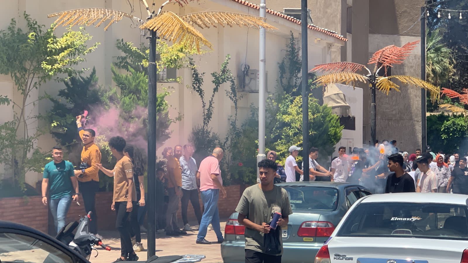 واحتفل الطلاب بإشعال الشماريخ والألعاب النارية، وهتفوا علي نغمات المزمار، وتجمع معهم أسرهم وذلك لدعمهم معنويًا بعد انتهاء عام بذل خلاله الطلاب جهودًا كبيرة، وتحملوا خلاله الكثير من الضغوط النفسية.