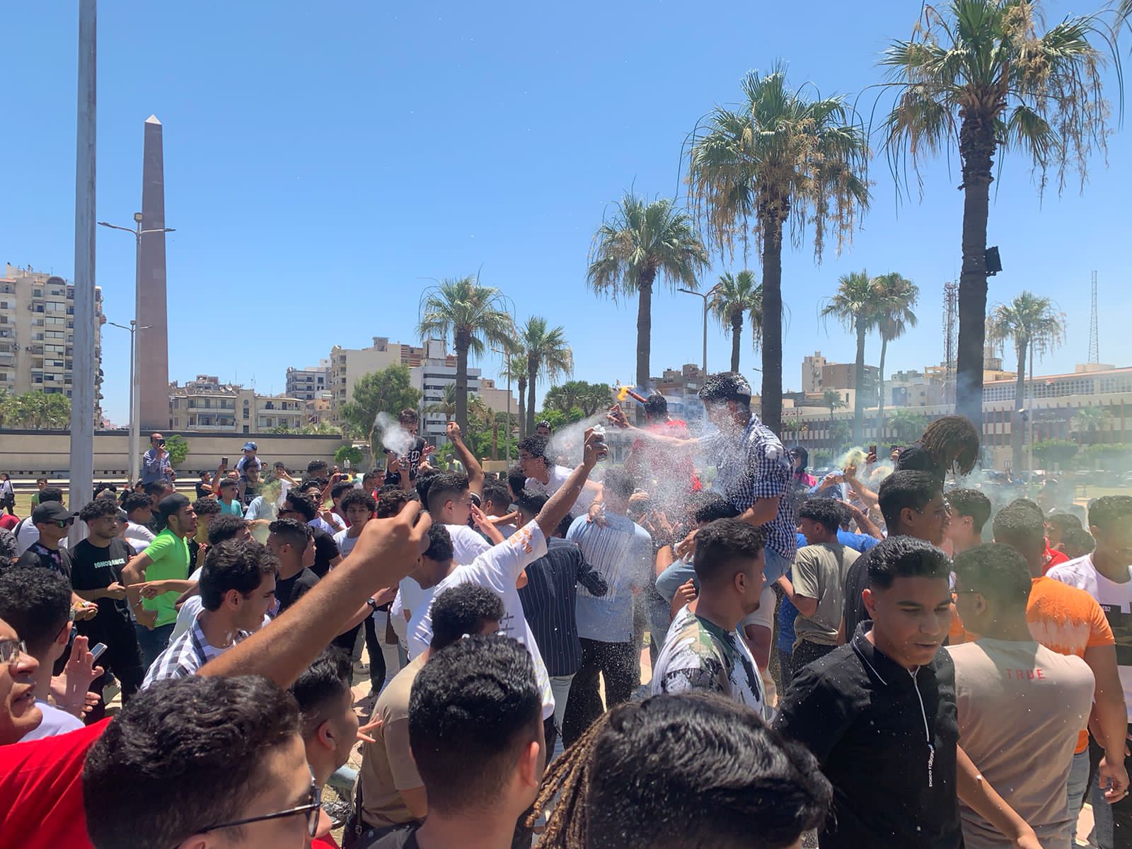 وتجمع الطلاب بحديقة المسلة نطاق حي الشرق، وذلك للاحتفال بانتهاء عام دراسي من أصعب الأعوام، واحتفلوا بالميدان على نغمات المزمار البلدي والطبلة والدف، وسادت حالة من الفرحة الكبيرة وسط الطلاب، الذين رقصوا فرحة بانتهاء الامتحانات.