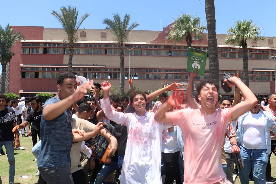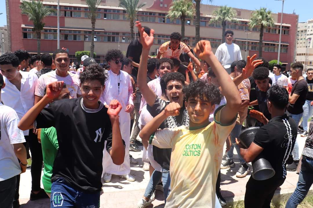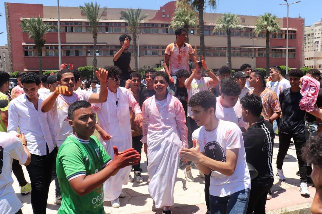 طلاب الثانوية العامة يحتفلون بانتهاء ماراثون الامتحانات ببورسعيد