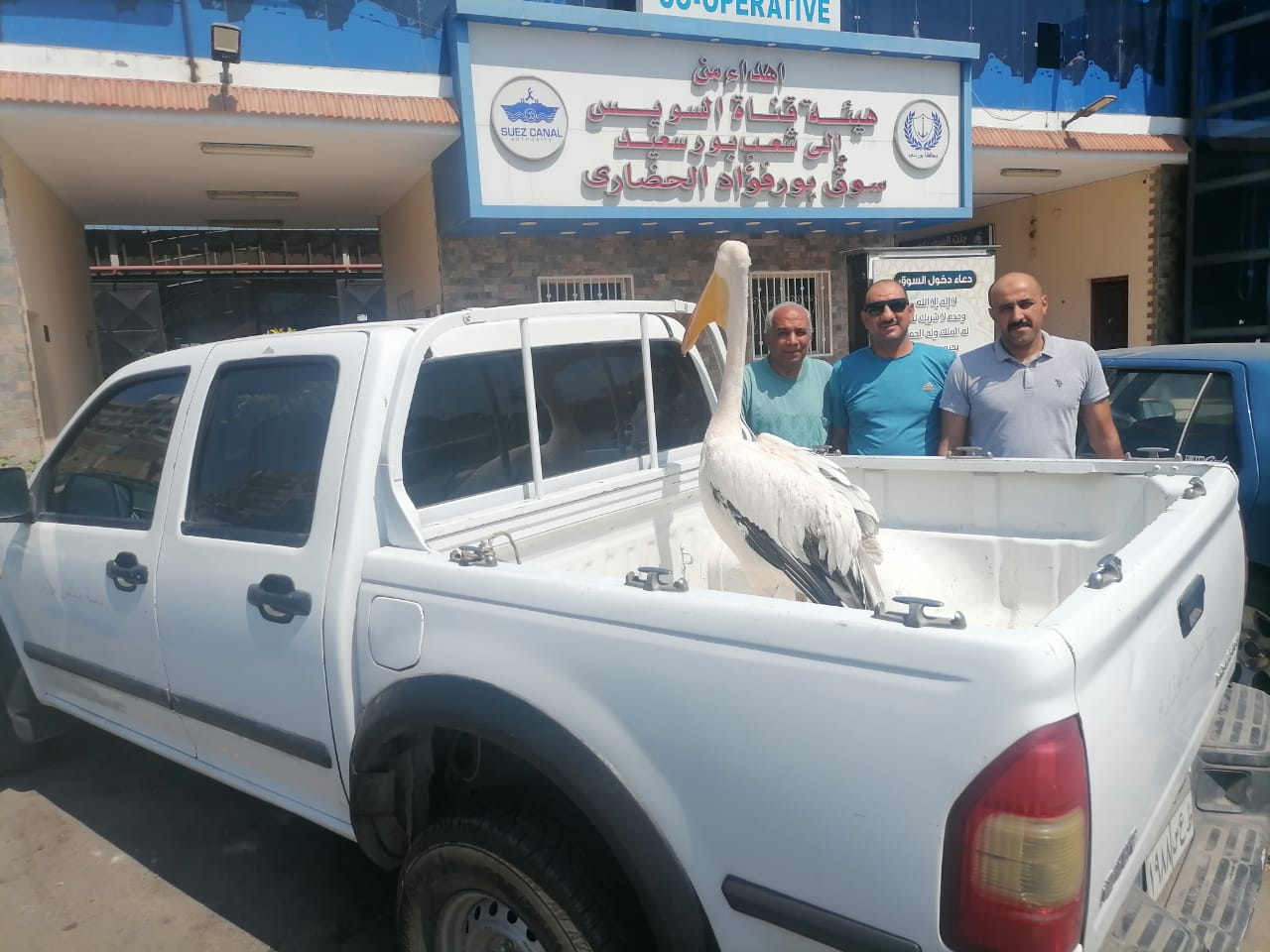 وقام فريق إدارة محمية أشتوم الجميل بضبط الطائر واتخاذ الإجراءات القانونية ضد المخالفين وإجراء كافة القياسات المطلوبة والكشف عليه ظاهريًا وعمل القياسات لتحديد نوعه وحالته الصحية، وأثبت من المعاينة أنه طائر البيليكان، وفي حالة إعياء شديدة تستجوب معه وضعه تحت الرعاية البيطرية لإعادة تأهيله وتغذيته لاستعادة قدرته على مواصلة الحياة في بيئته الطبيعية قبيل إعادة إطلاقه لبيئته الطبيعية بمحمية أشتوم الجميل.