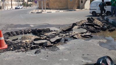 كسر ماسورة مياه أمام مستشفى الحسين الجامعي| صور