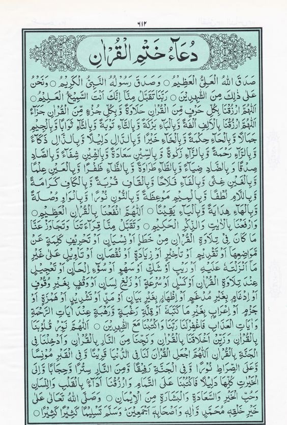 ومن دعاء ختم القرآن ما يلي من أدعية: