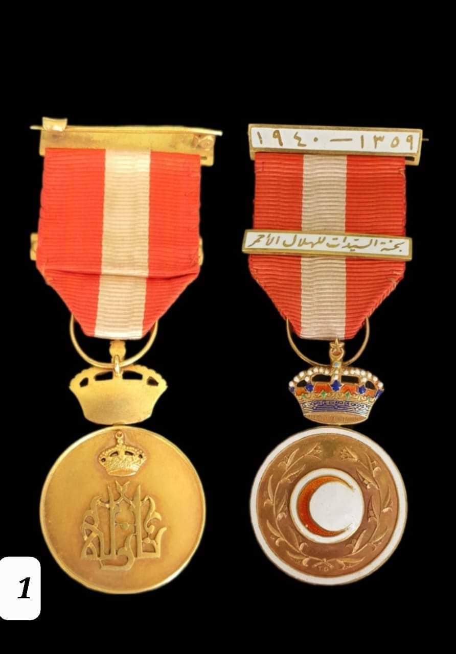 - شارة سيدات الهلال الأحمر، وهي أحد الأوجه بالميناء البيضاء ويتوسطه هلال بالميناء الحمراء والوجه الآخر مكتوب عليه (نازلي) ويعلوه التاج الملكي.
