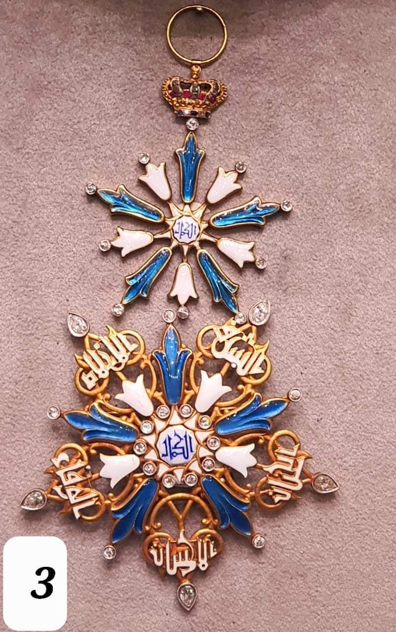 - نيشان الكمال مصنوع من الذهب ومموه بالميناء الزرقاء والبيضاء ومرصع بأحجار الماس، أهداه الملك فاروق للملكة فريدة بمناسبة الزفاف وهو يحمل صفات الكمال وهي (الإخلاص- الوفاء- الإحسان- الحنان- الشرف).