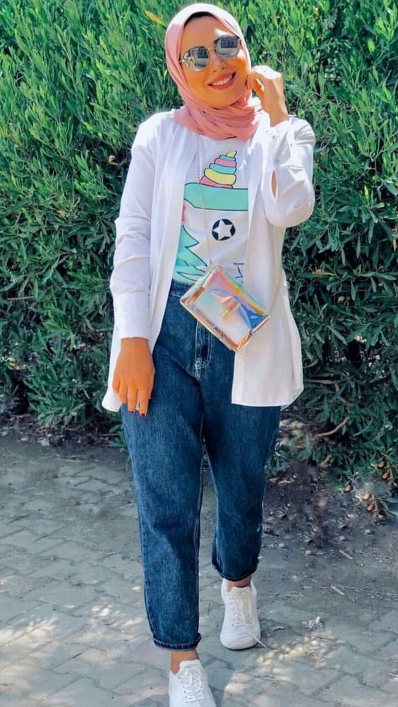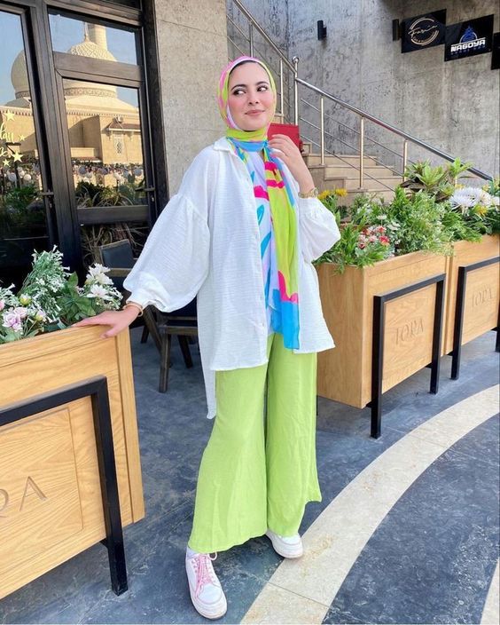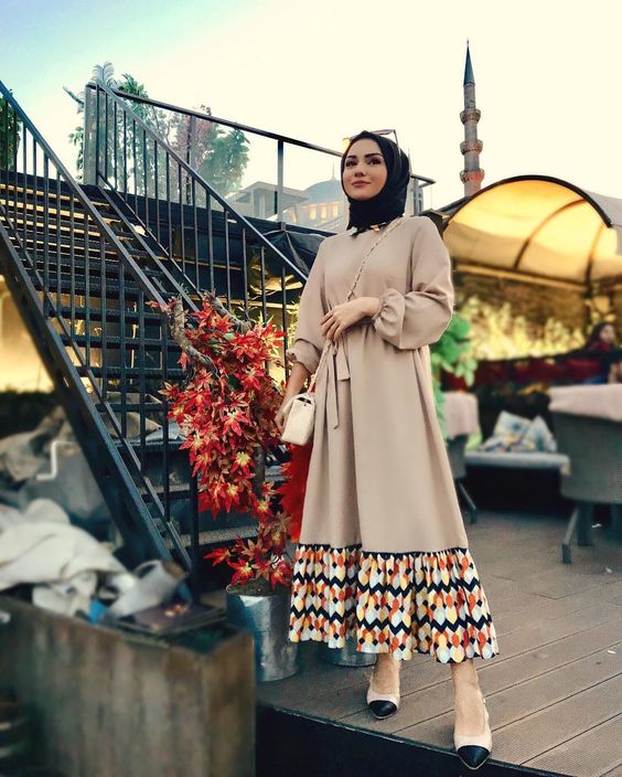 - الفضفاض: للملابس الفضفاضة يفضل ارتداء طرحة قصيرة متدلية بعض الشيء على منطقة الصدر في حالة كنتِ بدينة.
