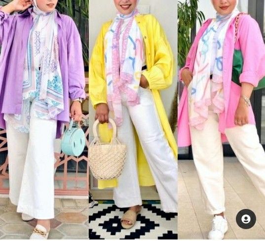 - الجينز: البنطال أو الجيب أو الفستان الجينز يليق عليهم جميع ألوان القطع العلوية والطرح في حالة عدم دخول ألوان عليهم.