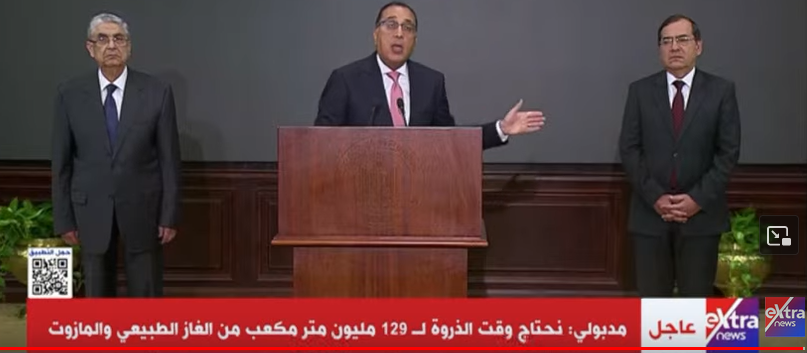 وأضاف مدبولي، خلال تصريحات بمؤتمر صحفي عقب اجتماع الحكومة اليوم: إننا استخدمنا كل إمكانيات الدولة من الغاز الطبيعي والمازوت المتاح للتعامل مع الأزمة، وكل دول العالم تواجه موجة من الارتفاع الشديد في درجات الحرارة، ونحتاج وقت الذروة لـ 129 مليون متر مكعب من الغاز الطبيعي والمازوت لتشغيل محطات الكهرباء.