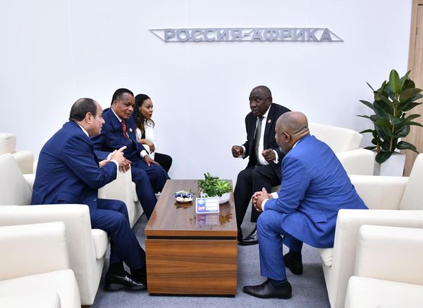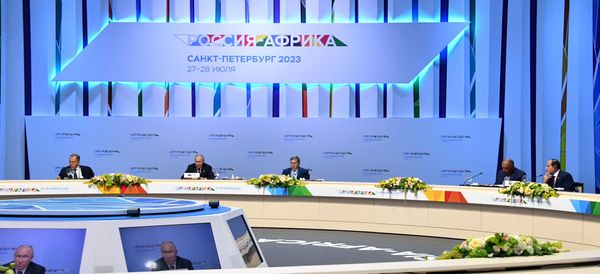 شارك السيد الرئيس عبد الفتاح السيسي بمدينة سان بطرسبرج في اجتماع مع الرئيس الروسي "فلاديمير بوتين"، إلى جانب قادة الدول الأفريقية المشاركين في مبادرة الوساطة الأفريقية لتسوية الأزمة الروسية الأوكرانية.
