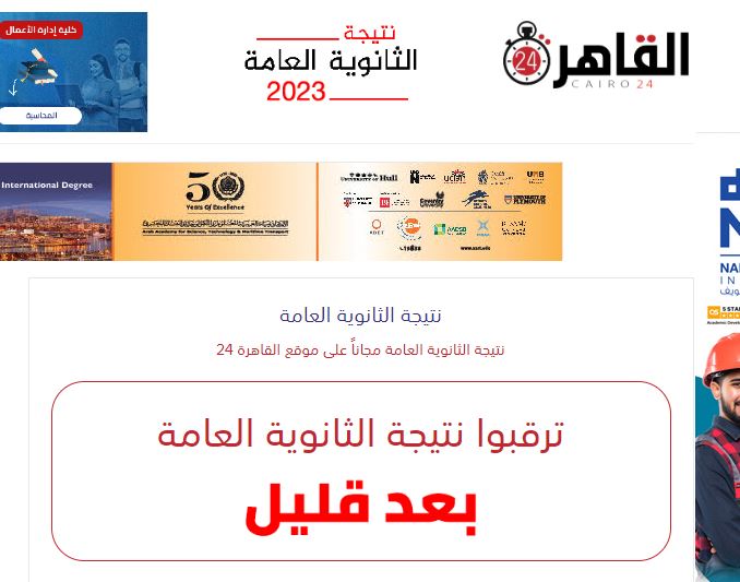 - ادخل على رابط القاهرة 24 لنتيجة الثانوية العامة من هــــــنـــــا.
