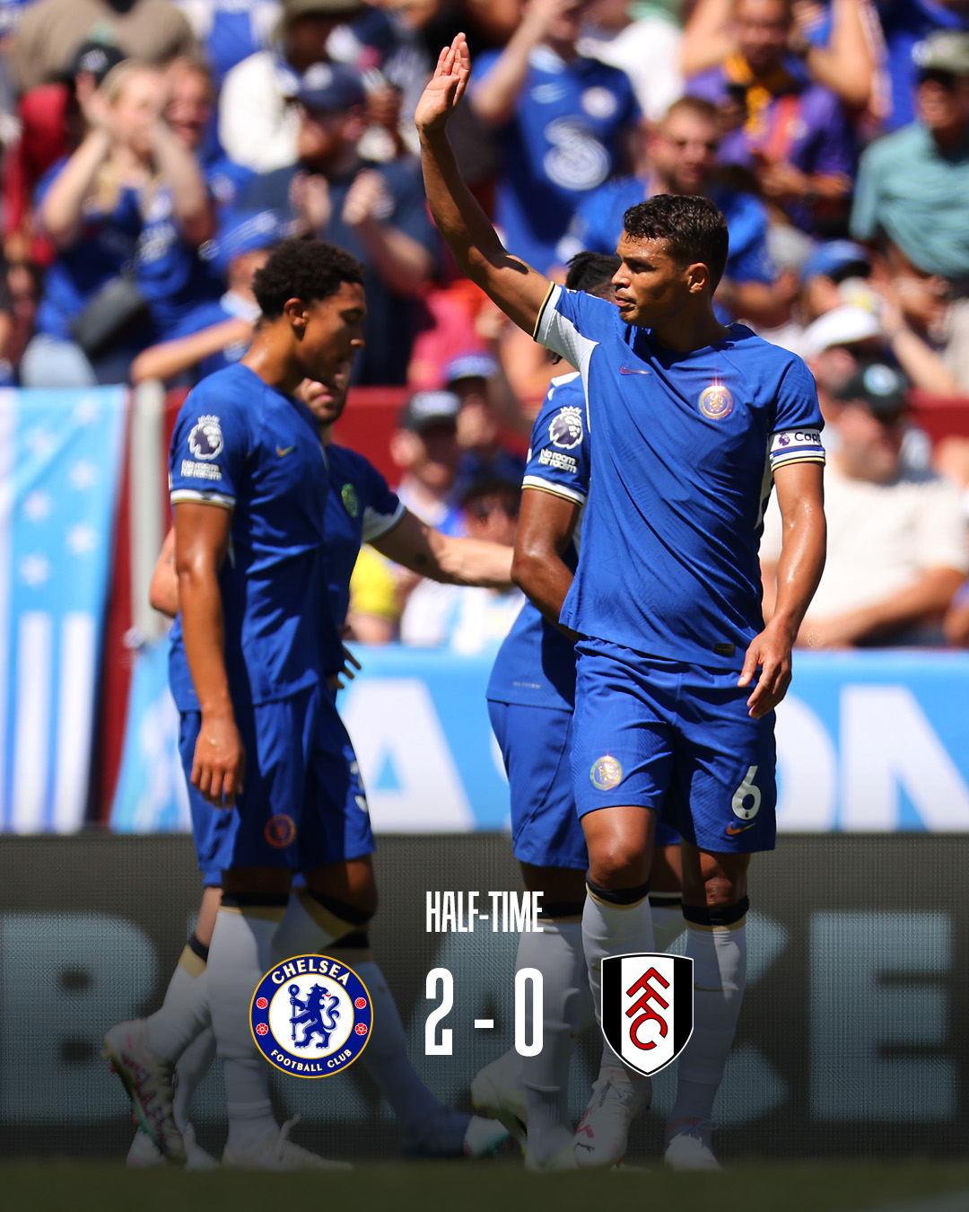 وافتتح فريق تشيلسي نتيجة اللقاء، بإحرازه هدفا في الدقيقة 20 من عمر شوط اللقاء الأول، عن طريق تياجو سيلفا.