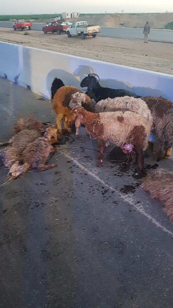 حادث تصادم 3 سيارات وتروسيكل محمل بالأغنام بطريق مصر إسكندرية الصحراوي