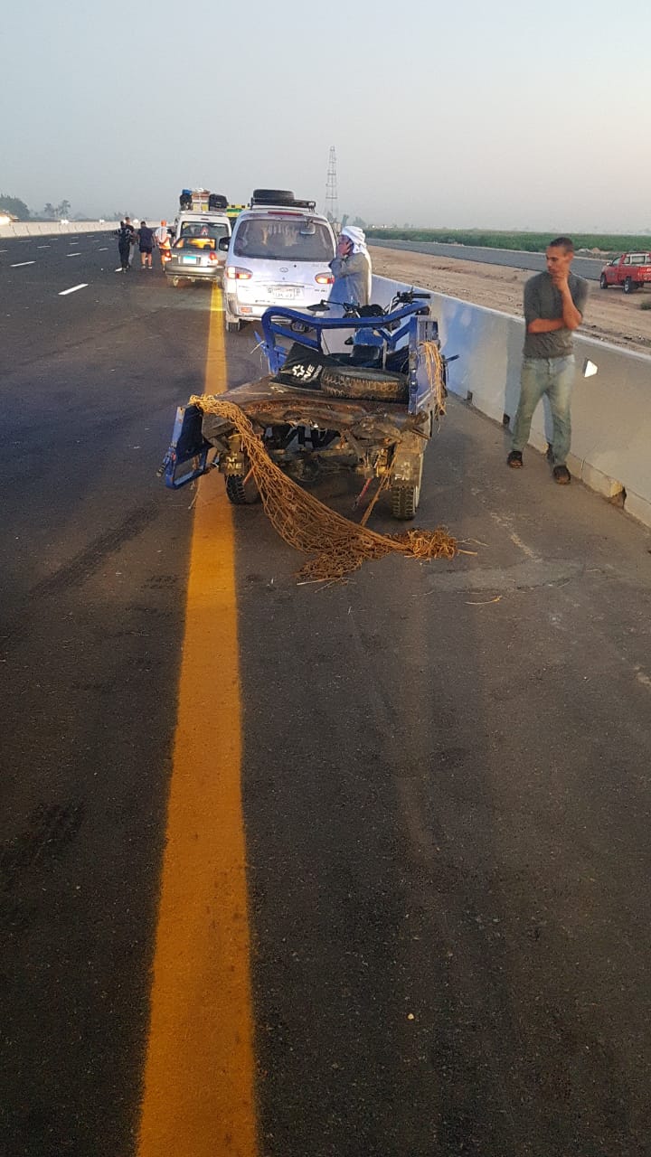 تلقت غرفة عمليات المرور إشارة من غرفة عمليات النجدة مفادها وقوع حادث مروري ووجود متوفى ومصابين بطريق مصر إسكندرية الصحراوية، وبالانتقال والفحص تبين وقوع حادث تصادم بين سيارة ميكروباص وتروسيكل محمل بالأغنام، كما تصادف مرور سيارتين ملاكي واصطدما ببعضهما وأسفر الحادث عن وفاة شخص وإصابة 10 آخرين، وتم نقلهم للمستشفيات لتلقي العلاج.