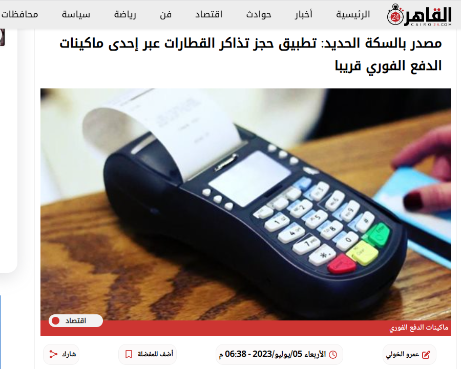 وكان القاهرة 24 قد نشر في وقت سابق عن طريق مصادر خاصة كشفت عن اقتراب هيئة السكة الحديد من طرح عملية حجز تذاكر القطارات عبر إحدى ماكينات الدفع الفوري الإلكتروني في محاولة لتسهيل طرق حجز التذاكر على المواطنين مستقلي السكة الحديد.