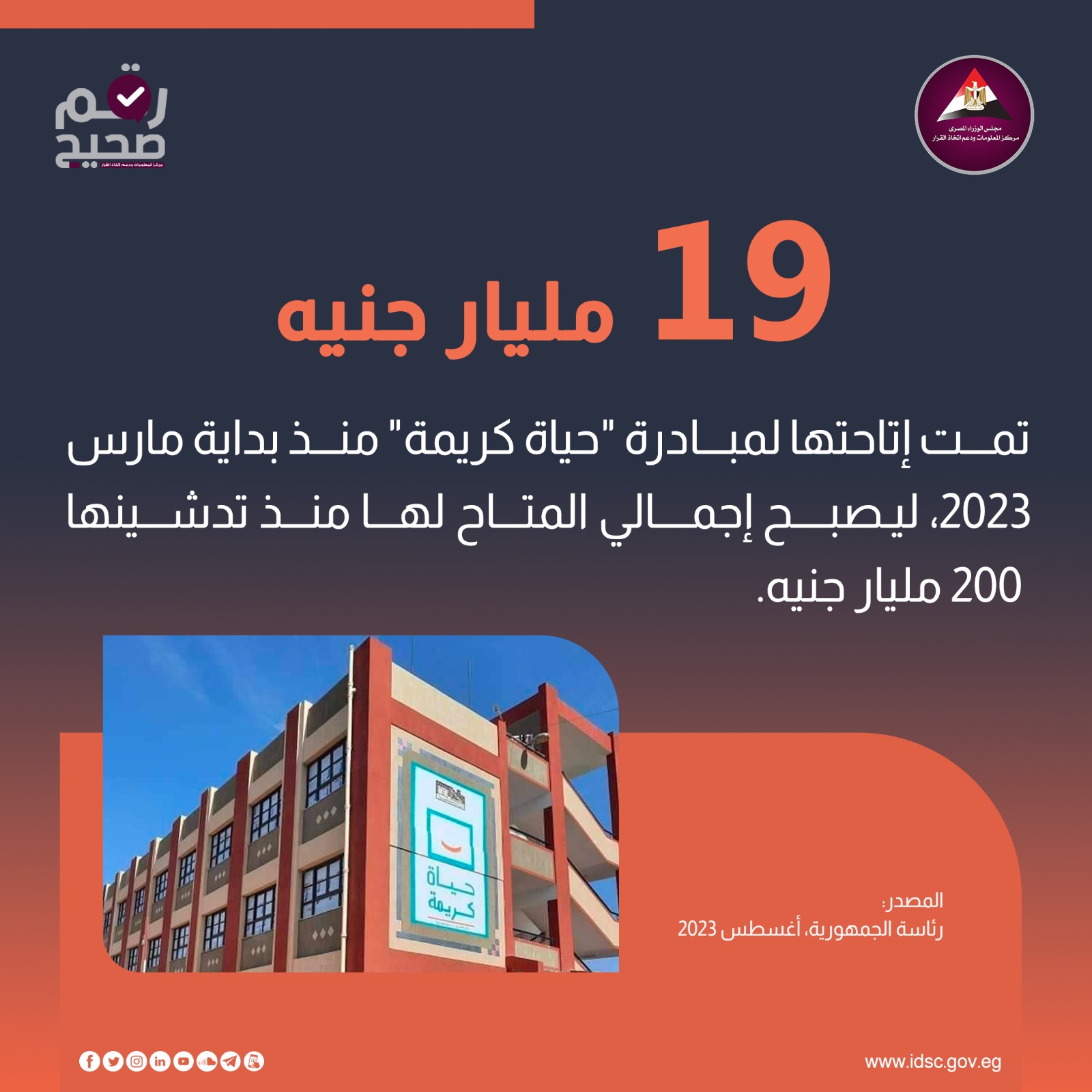 نشر المركز الإعلامي لـ مجلس الوزراء، إنفوجرافًا على صفحته الرسمية على موقع التواصل الاجتماعي فيسبوك، سلط الضوء من خلاله على المبالغ المالية التي أتيحت لمبادرة حياة كريمة منذ بداية مارس 2023، وحتى الآن.
