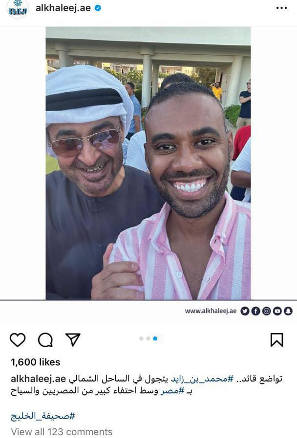 ونشرت صحيفة الخليج الإماراتية الشهيرة، صورًا تجمع محمد بن زايد ومحمود المملوك، على موقعها ومختلف منصاتها على مواقع التواصل الاجتماعي، ولقيت تفاعلا واسعا من الجمهور الإماراتي.