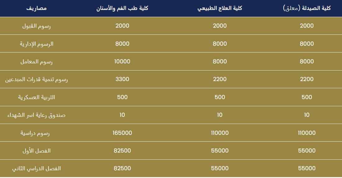 مصاريف كلية العلاج الطبيعي جامعة السلام 2023 – 2024