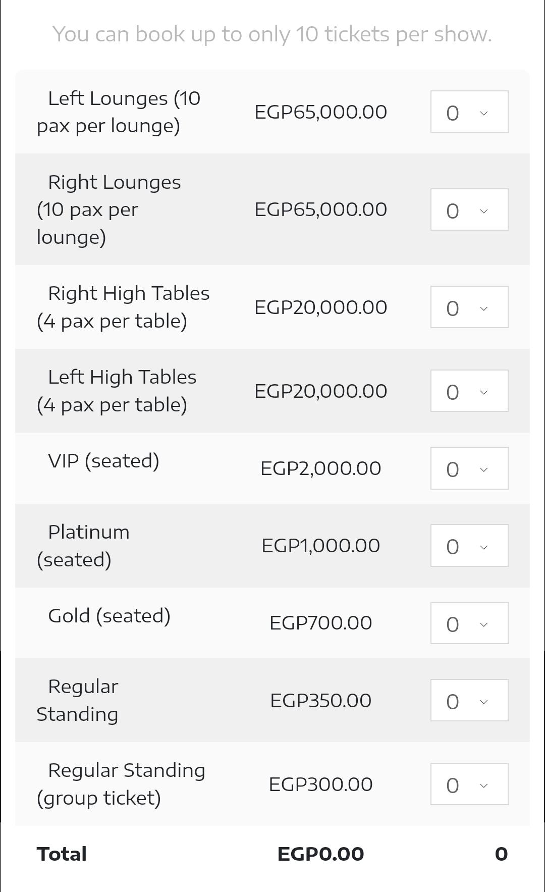 وطرحت الشركة المنظمة لحفل أنغام التذاكر في 7 فئات، وجاءت أسعار التذاكر كالآتي: