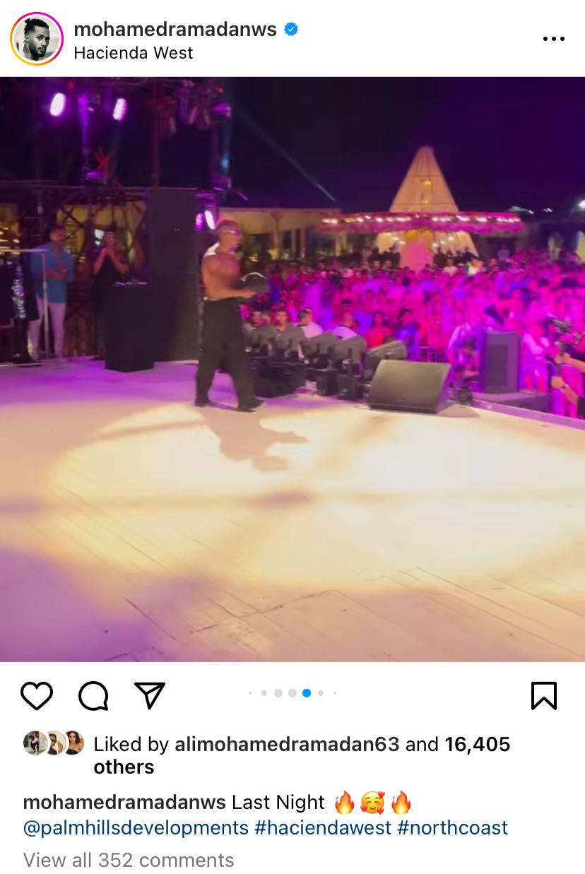 وشارك رمضان، مقطع فيديو وهو يظهر فيه عاريًا على المسرح، وذلك عبر حسابه الشخصي بموقع تبادل الصور والفيديوهات إنستجرام.