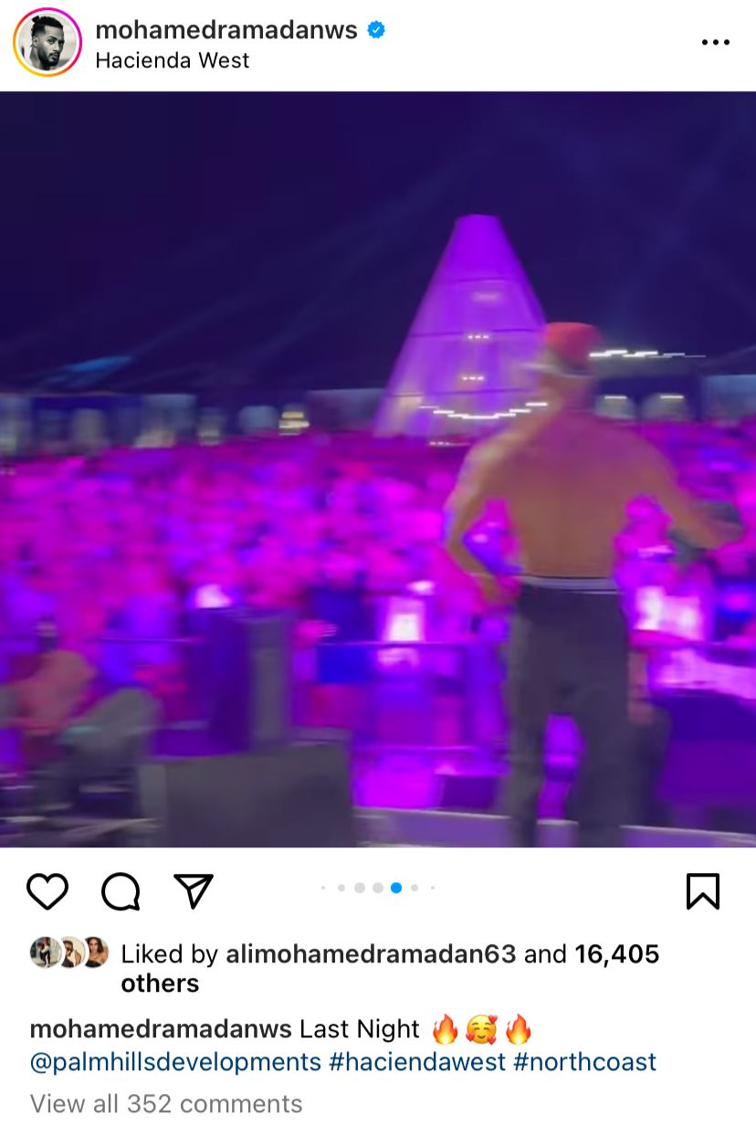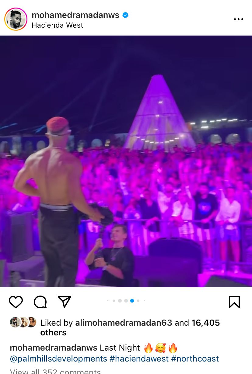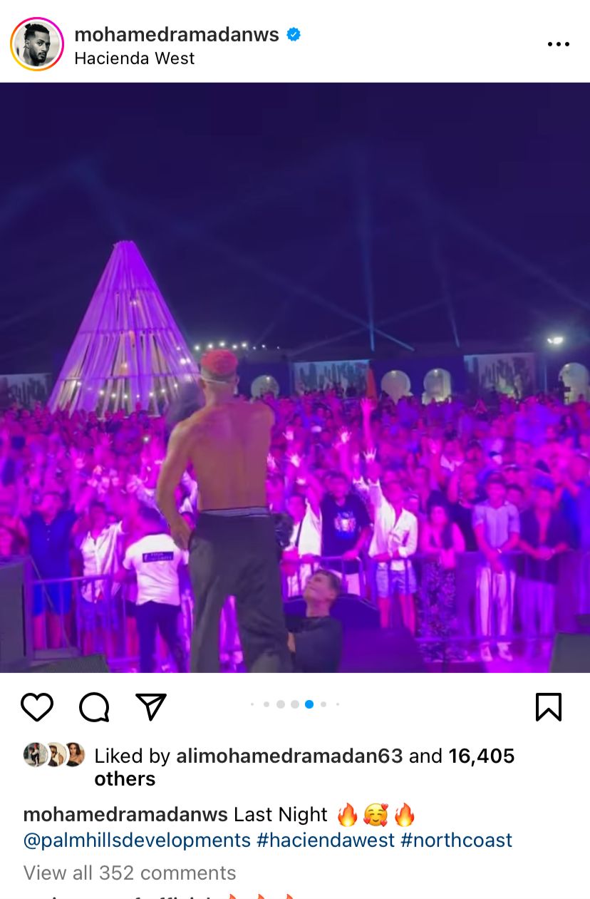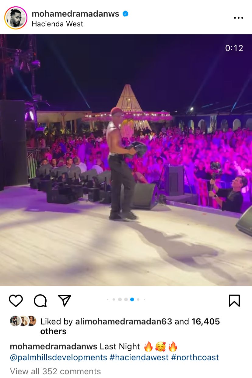 وكان أحيا محمد رمضان حفلًا مؤخرًا ضمن حفلات موسم صيف في منطقة الساحل الشمالي، بحضور عدد كبير من الجمهور ومحبيه.