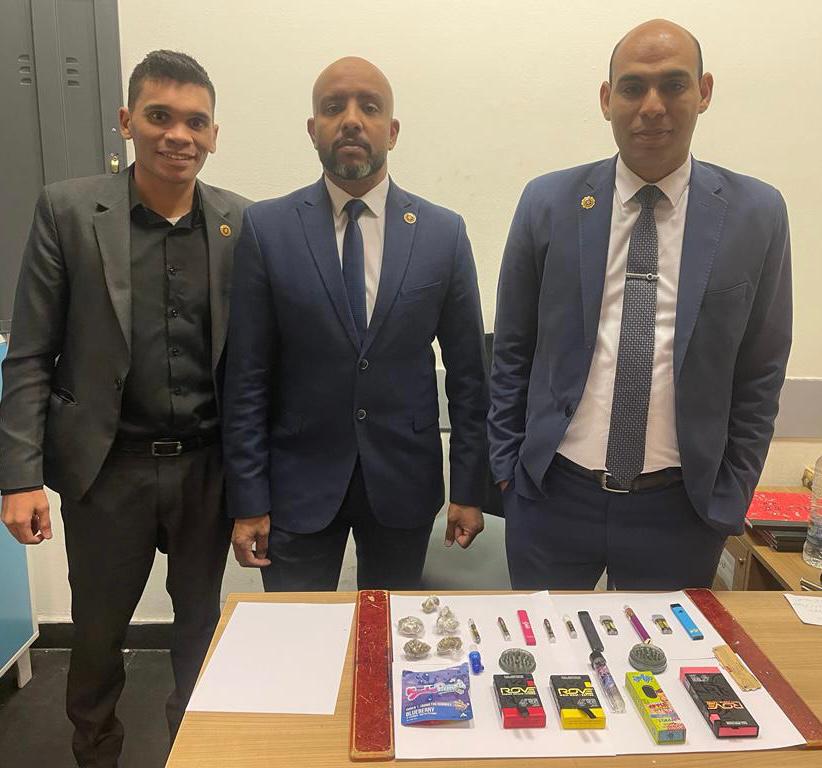 كما أسفر التفتيش عن ضبط كيس بداخله خمس قطع حلوى تحتوي على مادة THC المخدرة و4 سجائر إلكترونية بهم زيت الماريجوانا و6 "تانك" زجاجي بداخلهم نفس الزيت المخدر بإجمالي 16 عبوة.