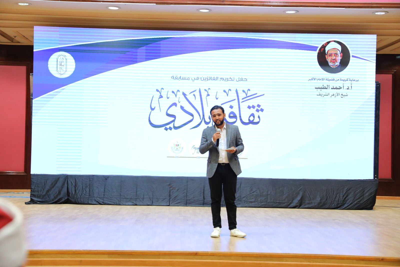 وتابع وكيل الأزهر خلال كلمته في حفل تكريم الفائزين في مسابقة ثقافة بلادي: نعمل على أن يكون هذا الحفل والتكريم خُطوة في طريق حماية الفكر، وصيانة الهوية من محاولات الاختطاف أو التشويه من قبل أفكار مغلوطة أو مشروعات منحرفة، ولا يخفى عليكم أن مصر تعيش حالة فريدة من التعايش بين أبنائها، وخاصة في ظل دعم الرئيس عبد الفتاح السيسي، رئيس الجمهورية، ودعوته للحوار الهادف الذي تتضافر فيه جهود الجميع لإعلاء قيم التعايش والتسامح، ومد جسور التفاهم والإخاء، والتصدي لخطاب الكراهية، ونشر قيم العدل والمساواة من أجل تحقيق السلام والاستقرار.