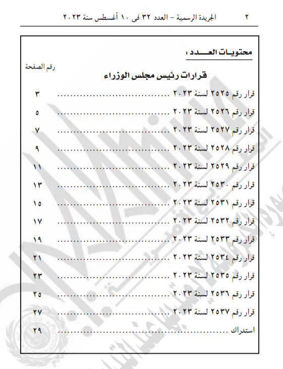 نشرت الجريدة الرسمية في عددها الصادر رقم 32 بتاريخ 10 أعسطس سنة 2023، 13 قرارا لـ رئيس الوزراء بشأن تخصيص أراض بالمجان بالمحافظات لإنشاء مشروعات نفع عام.