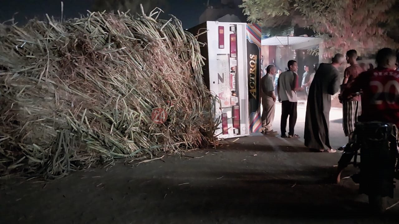 انقلاب تريلا محملة بالقصب على الطريق الزراعي بسوهاج |صور