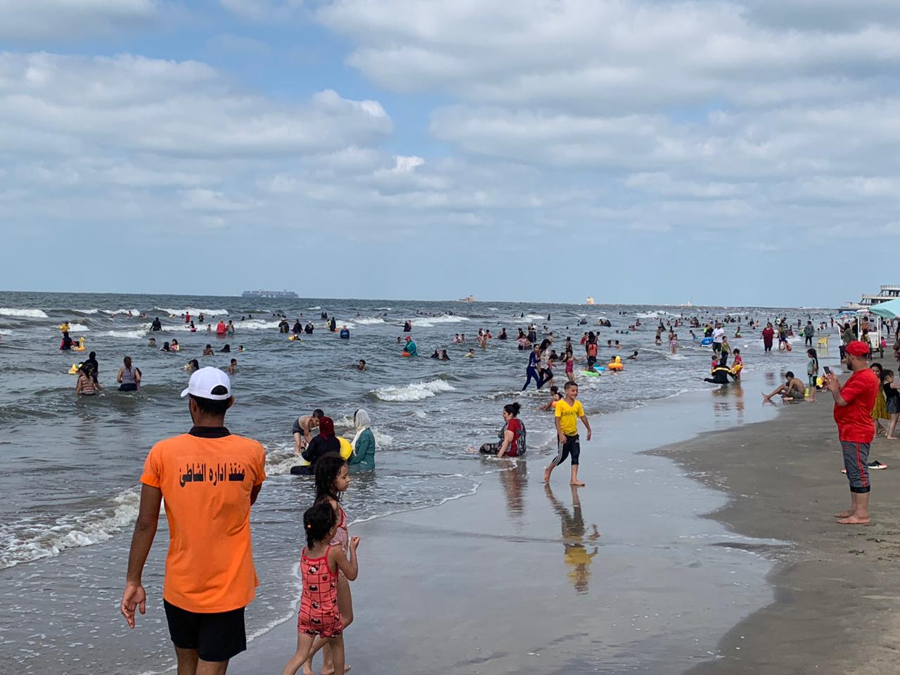 شاطئ بورسعيد يستقبل آلاف المصطافين خلال الصيف وسط تكثيف لفرق الإنقاذ