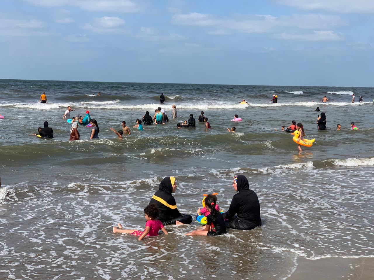 ورصد القاهرة 24 خلال الأيام الماضية تواجد العديد من المواطنين على طول شاطئ المحافظة، وتحديدا في نطاق حي العرب، حيث حرص المصطافون علي ممارسة السباحة واللعب في الرمال، وكذلك ممارسة الألعاب المائية والشاطئية، بالرغم من الارتفاع النسبي في الأمواج.