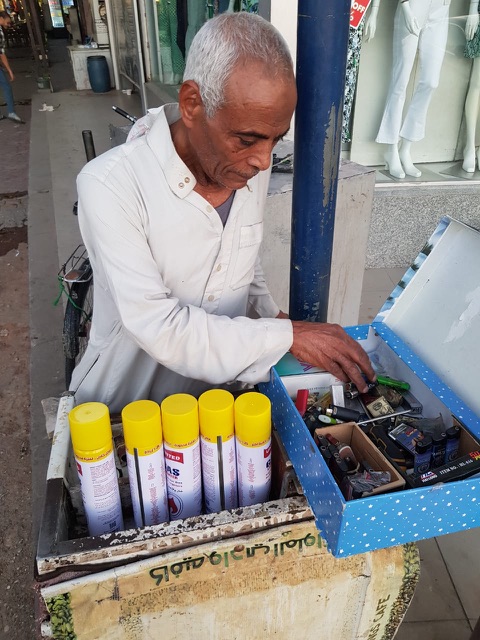 بفاترينة خشبية صغيرة متواضعة على أول السوق السياحي بالأقصر يجلس رجل قارب الـ 70 من العمر يناديه الناس بالدكتور العسال، وذلك لخبرته ومهارته في صيانة جميع أنواع الولاعات منذ 46 عاما.